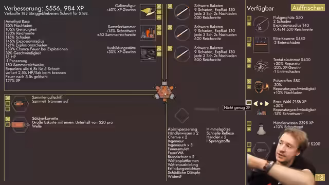 01:29:47Es wird über die Bedeutung von Reichweite und Wendegeschwindigkeit gesprochen, wobei der Fokus auf die Optimierung der Wendegeschwindigkeit gelegt wird. Der Streamer kündigt eine kurze Pause an. Nach der Pause werden Verbesserungen an den Fähigkeiten und Attributen des Charakters vorgenommen, um diese zu optimieren. Es wird überlegt, wie man die Wendegeschwindigkeit erhöhen kann, um die Sammelreichweite zu verbessern. Es wird humorvoll angedeutet, dass der Stream möglicherweise nicht jugendfrei ist. Der Verlust von maximalen AP wird thematisiert und die Community wird scherzhaft dafür verantwortlich gemacht. Die Soundeffekte im Spiel werden mit denen eines Disney-Zeichentrickfilms verglichen. Es wird überlegt, Waffen-Upgrades durchzuführen und sich mit den Plünderern einzulassen, um experimentelle Munition zu erhalten. Die Reparatur-Schiffe werden erneut als sehr wertvoll hervorgehoben. Das Einsammeln von Gegenständen wird als nervig empfunden. Es wird überlegt, wann die Koordinierungsfähigkeit eingesetzt werden soll und die Wichtigkeit von Geld im Spiel betont.