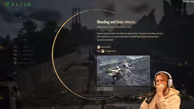 02:58:02Im Gameplay von Code Vein 2 erkundet der Streamer die Anfangsgebiete, interagiert mit NPCs und erläutert die grundlegenden Spielmechaniken. Er erklärt das LP-System, das mit dem Schaden zunimmt, und den Linktrade-Partner, der bei Bedarf zusätzliche Angriffe durchführt. Ein zentrales Element ist die Block- und Parry-Mechanik, die er als ausgereift und mit guten 'I-Frames' (Invincibility Frames) beschreibt. Er hebt hervor, dass die Erkundung der Welt durch einen linearen Aufbau mit optionalen Gebieten angereichert wird und die Notwendigkeit, seine Waffen und Fähigkeiten gezielt zu upgraden.