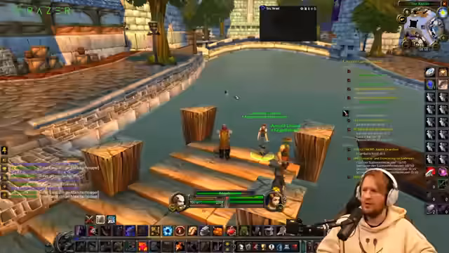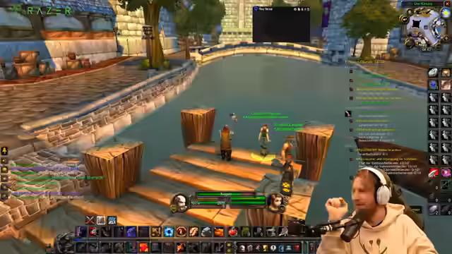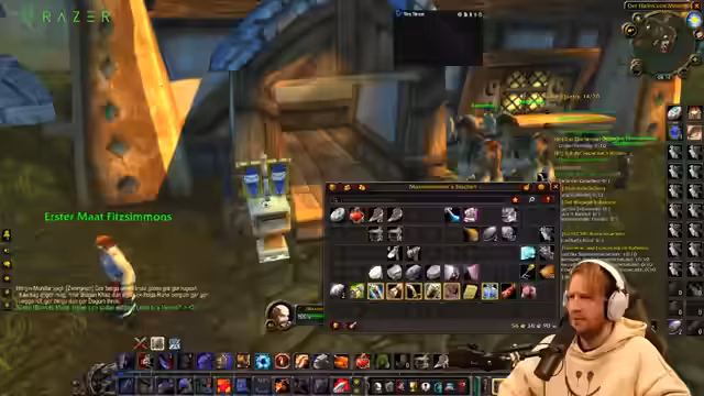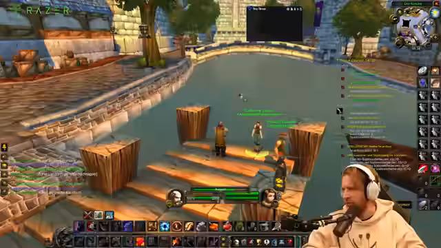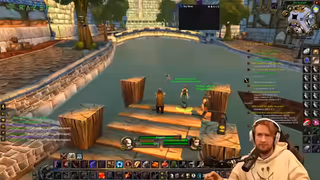 01:02:57Nachdem die technischen Probleme eine ordentliche Durchführung des World of Warcraft Streams unmöglich gemacht haben, wechselt der Streamer zum Thema Angeln. Er erklärt, dass er Angeln leveln wird, da er dazu nicht auf eine stabile Internetverbindung angewiesen ist. Dabei bittet er die Chat-Mitglieder um Anweisungen, was zu einer humorvollen und leicht chaotischen Interaktion führt. Anschließend teilt er eine lange Anekdote aus seiner Kindheit über illegales Angeln in einem Teich in Leipzig, wobei er eine erfolgreiche, aber betrügerische Fangtechnik beschreibt, die ihm und seinem Brader bei der Jagt auf ein großes Ungeheuer half.