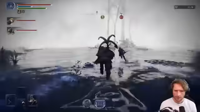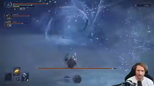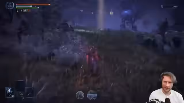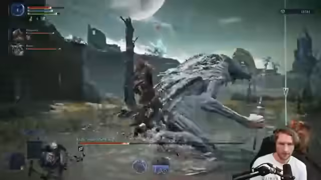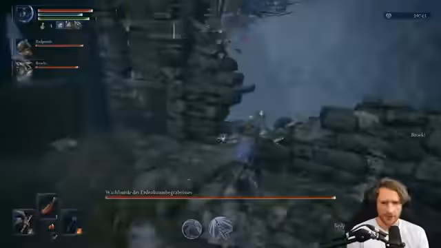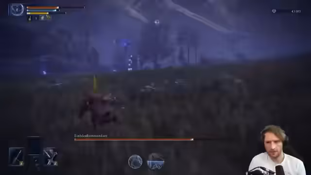 04:14:48Die Begegnung mit zwei berittenen Gegnern erweist sich als überwältigend. Einer der Gegner fokussiert den Streamer stark, was das Ausweichen erschwert. Nachdem er einen der Reiter besiegt hat, wird der zweite noch aggressiver. Anschließend stößt er auf einen Steinmann-Boss, den er nach anfänglichen Schwierigkeiten durch Ausnutzen von Blutungsschaden besiegt. Er erwähnt, dass gestern manchmal nach einem Kampf ein weiterer Boss aufgetaucht sei, was auf einen Fluch hindeute.