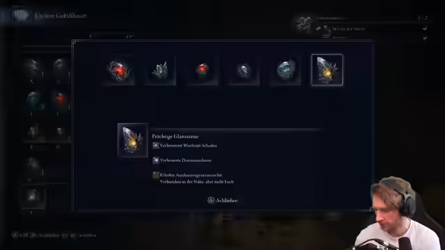05:17:06Während der Erkundung werden verschiedene Waffen und Items gesammelt. Ein seltener Ameisenstachel-Rapier wird gefunden, der auf Scharlach und Gift aufgerüstet werden kann. Es wird erkundet, ob man durch Runen Items im Gamba-Ländern kaufen oder im Gefäß würfeln kann. Ein Feld-Boss, der als übelst schlecht beschrieben wird, wird aufgesucht, nachdem ein Schlüssel für die Burg fehlt. Die Kämpfe erfordern Koordination und das Anwenden von Debuffs.