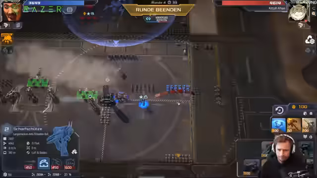 03:50:56Nach dem langen Sniper-Duell wendet sich das Spiel. Der Streamer beschließt, den Gegner mit einer 'einsseitigen Nummer' unter massivem Druck zu setzen. Anstatt weiter defensiv zu spielen, wird eine aggressive, offensive Taktik gewählt, um den Gegner zurückzudrängen. Ein entscheidender Fokus liegt auf der Raketenabwehr, da der Gegner 'fucking viele Mustangs' ohne Ende besitzt. Die Investition in Reichweite, insbesondere bei den Scharfschützen, als auch bei den Panzern, erweist sich als entscheidend. Die Strategie aufgeht, der Gegner wird geschwächt und schließlich kann der Streamer das Spiel für sich entscheiden, was als großer Triumph und 'gewinnt macht mehr Spaß' gefeiert wird. Der Sieg ist das Ergebnis des erfolgreichen Übergangs von der Verteidigung zur gezielten Offensive.