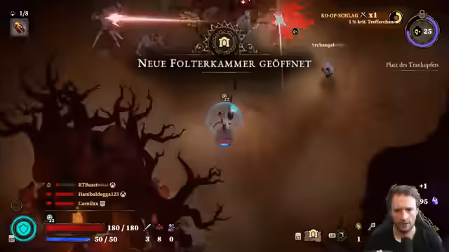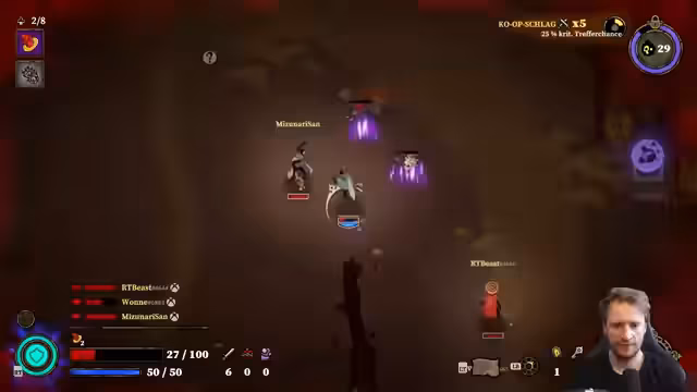 02:15:20Es wird eine detaillierte Analyse des Gameplays und der Mechaniken des Spiels gegeben. Die Animationen und alles werden als unfassbar krass, aber auch als sehr stumpf gemacht beschrieben. Das Schlüsselholen wird als sehr geil empfunden, und der Schaden ist insgesamt gut hochgegangen. Es wird angemerkt, dass es sich um ein gemeinsames Roguelike handelt, das optisch jedoch nicht anspricht. Es wird überlegt, welche Symbole auf der Karte zu deuten sind. Der Schleim, der rechts hinter einem ist, wird erwähnt und dass dieser entsteht, wenn man Gegner tötet. Es wird erklärt, dass man zur Sonne muss und so schnell wie möglich an seine Ultran kommen muss, um den Schild zu bekommen. Es wird angemerkt, dass das Spiel sehr chaotisch ist und man verstehen kann, wenn jemand hier nichts rafft. Es wird beschrieben, wie viele Geschosse aus einem Gegner kommen und dass eine Bombo-Kombo mit der Verlangsamung möglich ist. Wenn jeder seine Ults macht, ist der Aufstiegskampf schnell abgeschlossen. Nach dem Aufstiegskampf können die Spieler aufsteigen und sich Bossen stellen. Das Spiel wartet, bis alle Spieler aufgestiegen sind, bevor es zum Bosskampf übergeht. Es wird nicht verstanden, was man gerade tun soll und was die anderen Spieler machen. Die Kristalle sehen böse aus, und man rutscht übelst. Es wird vermutet, dass man als Death-Haufen bleiben muss. Der Boss pustet einen weg. Es wird angemerkt, dass die Crit-Chance übel hoch ist und es geil ist, dass alle Tanks vorne bleiben und das einfach parrieren. Die Idee, dass ein Spieler die ganze Zeit tankt, wird als sehr cool empfunden. Es wird festgestellt, dass das Parry-Fenster riesig ist und man es fast gar nicht verkacken kann. Es wird angemerkt, dass der Schild zwar niemanden damage-wise etwas bringt, aber trotzdem ein hilfreicher Spell ist, weil keiner Nein zu einem Schild sagt, der recht viel Leben gibt. Es wird gefragt, ob das Spiel Early Access ist und ob man irgendwann neue Bosse sieht. Es wird angemerkt, dass es drei Dungeons am Anfang gibt und 22 Immortals. Das Spiel hat grundsätzlich gut gefallen, aber es ist noch zu wenig. Man weiß nicht richtig, was passiert. Als Zuschauer. Es wird angemerkt, dass man viele leichtere Angriffe machen musste und schwere Angriffe zum Staggern nicht unbedingt worth sind.