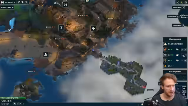 00:00:00Der Stream beginnt mit dem Soulkeeper Run, dem ein Tower-Defense-Spiel. Der Streamer startet mit einer anfänglichen Ressourcenverteilung, wobei der Fokus auf Holz- und Goldproduktion liegt. Es wird der Bau von Handelsschiffen und ersten Türmen priorisiert, um eine stabile wirtschaftliche Basis zu schaffen. Der Spieler diskutiert über die anfänglichen Gebäude-Upgrades und erkundet spielinterne Mechaniken wie Truhen und Marktangebote. Die ersten Wellen werden überwunden und das Ziel ist es, eine nachhaltige Struktur für die kommenden Wellen und späteren Bosse aufzubauen.