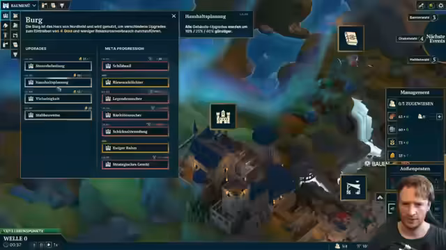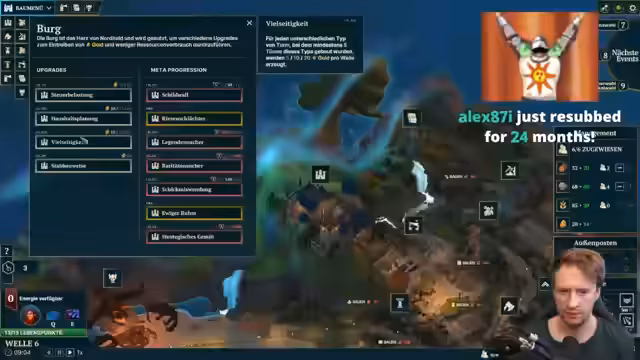 00:00:00Der Stream beginnt mit einem lockeren "Guten Morgen" an den Chat. Es wird ein wundervolles Game angekündigt, wobei die ersten drei Wellen gespielt werden sollen. Es wird über die Strategie für den bevorstehenden Soulkeeper Run um 10 Uhr nachgedacht. Eine Idee ist bereits vorhanden, aber die Umsetzung bedarf noch etwas Feinschliff. Es wird erwähnt, dass normalerweise erst später mit dem Streamen begonnen würde, aufgrund eines Trainings um 8 Uhr. Der Fokus liegt zunächst darauf, möglichst viel Geld zu generieren und eventuell ein Schiff zu erwerben, um später Steuern einzunehmen. Es wird überlegt, ob ein Blitzschlag im Late Game nützlich sein könnte. Der Plan ist, Handelsschiffe zu bauen, um mehr Geld zu erhalten. Ein Handelsschiff wird gebaut. Es wird überlegt, Elite-Gegner zu bekämpfen, um an Truhen zu gelangen. Die Sprünge sind sehr lucky gewesen. Es wird eine coole Idee für später angekündigt, jedoch mit einem gewissen Risikofaktor. Ziel ist es, 100 Nahrung zu produzieren. Es wird überlegt, das Marktangebot zu nutzen, um Gold zu generieren. Ein stärkerer Gegner wird gesichtet und es wird überlegt, diesen einzufrieren.