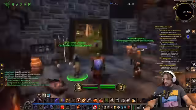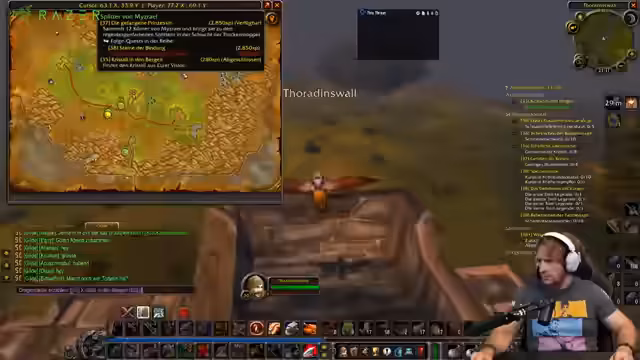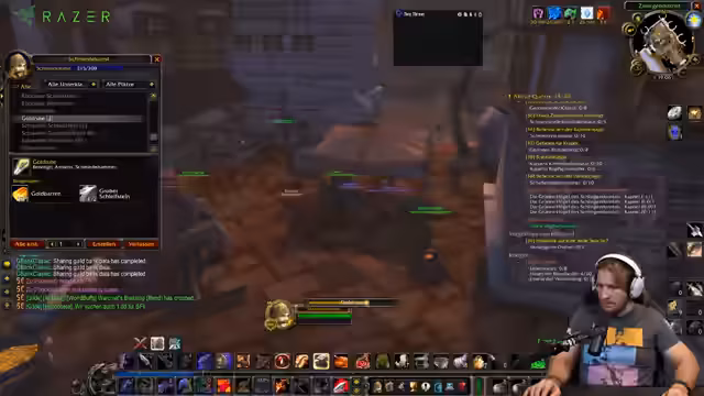 01:37:58Der Streamer erhält mehrere Schmiede-Anfragen, insbesondere für gemusterte Bronzearmschienen, die Quest-Items sind. Er überlegt, mehrere Exemplare zu erstellen, wenn das Material (grober Stein) vorhanden ist, und erwähnt, dass Bronzearmschienen bei 125 oder 150 Schmiede-Skill benötigt werden. Es geht um Kooperationen mit anderen Spielern, die Materialien liefern, und um die Logistik des Fliegens von South Shore nach Stormwind, um die Aufträge zu erfüllen. Griefer im Schlingdorn-Tal werden auch erwähnt, mit Diskussionen über Sichtbarkeit und Schutzmaßnahmen.