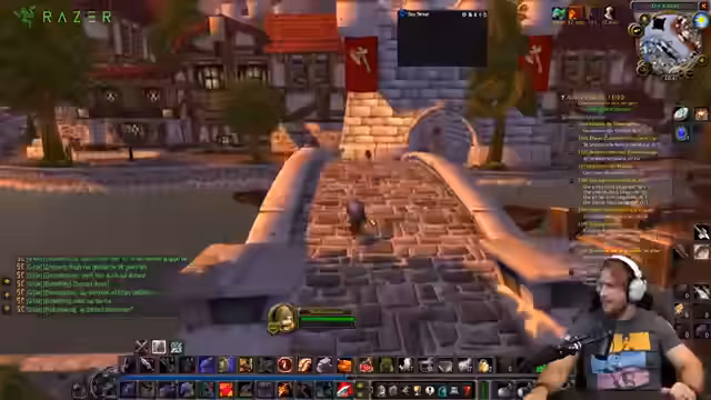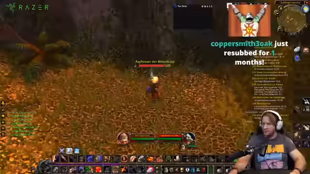 00:01:10Der Streamer eröffnet sein Schmiedebüro und teilt mit, dass Booty Bay Buffs in etwa 10 Minuten aktiv werden. Er erwähnt, dass beide Buffs mehrfach erscheinen und plant, den Buff selbst zu holen. Währenddessen interagiert er mit Zuschauern über Discord und bietet seine Schmiedekunst (Stufe 215) an, um Goldruten und Rüstungen zu schmieden. Er betont, dass er abends sein Büro geöffnet hat, normalerweise nicht strandet, und erklärt, dass er spezielle Rezepte aus der Menschenbank anbieten kann.