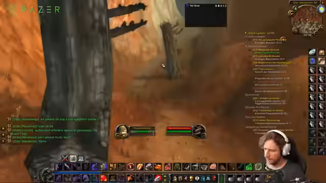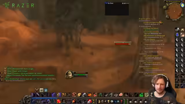 02:49:17Der Streamer erreicht Desolace und nimmt eine gefährliche Escort-Quest an, bei der er einen NPC durch ein von der Horde besetztes Gebiet eskortieren muss. Er zeigt sich trotz seines hohen Levels nervös wegen der Respawn-Gegner und des Risikos, von mehreren Feinden gleichzeitig angegriffen zu werden. Die Quest erfordert strategisches Vorgehen, da er NPCs eskortieren muss, während er mit Gegern kämpft.