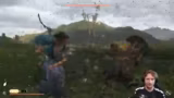 00:02:27Der Streamer erkundet die Spielwelt und stößt auf erste Hindernisse und Gegner. Er kommentiert die Steuerung des Spiels, besonders die Pustemechanik, die Unterschiede zwischen den Konsolen und sein persönliches Spielerlebnis. Es gibt erste Kämpfe mit verschiedenen Gegnern, darunter auch eine Begegnung mit einem Wolf. Der Streamer diskutiert über die Stärken und Schwächen seiner Ausrüstung und experimentiert mit verschiedenen Waffen und Techniken.