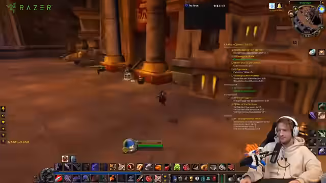02:03:44Der Streamer teilt seine umfassende Erfahrung mit World of Warcraft, seit dem Release des Retail vor 20 Jahren, und seinen Einstieg in den Classic-Modus 2019. Er betont, dass ein Spieler mit solch langer Erfahrung auch in der Sauerkraut-Gilde als Experte angesehen wird und Verantwortung tragen könnte. Dabei wird die Thematik der 'Noob'-Spieler beleuchtet, die in Paniksituationen oft Informationen falsch verarbeiten und sterben, was für erfahrene Zuschauer schwer zu beobachten ist, ohne unhöflich zu wirken.