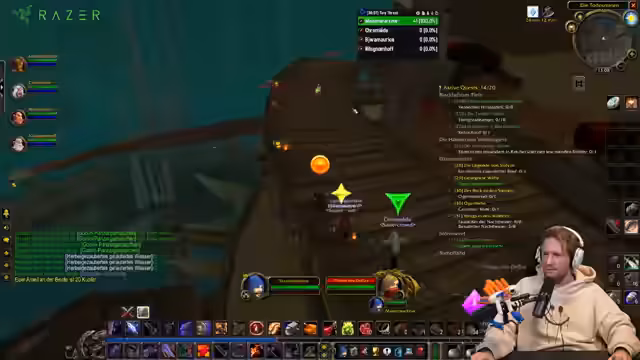 06:08:02Nach dem Abschluss der Ressourcen-Farming-Aktivitäten wird der nächste Ort festgelegt: Loch Modan. Ein Fokus liegt auf der Durchführung von Kriegsflaggen-Quests und der Jagd auf bestimmte Mobs. Der Streamer unterhält sich über seine Pläne, Level 40 zu erreichen und im Kloster nach Ausrüstung zu jagen.