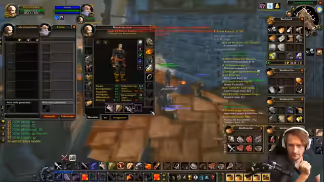 02:23:52Zeitmanagement für das Holen von Onyxia-Buffs wird als problematisch beschrieben, da das reale Leben oft dazwischenfunkt. Es wird über einen frühen Tod des Charakters 'Arschbohrer' gesprochen und eine neue Route, wie nach Ironforge, geplant. Die Entscheidung, ob man ins Sumpfland oder zum Elfengebiet zieht, liegt beim Chat. Schwierigkeiten bei der Handhabung von Taschen und Gegenständen werden offenbart, was Frustration auslöst. Die Funktionsweise des Gildenfensters und der Benachrichtigungen wird als unzureichend empfunden.