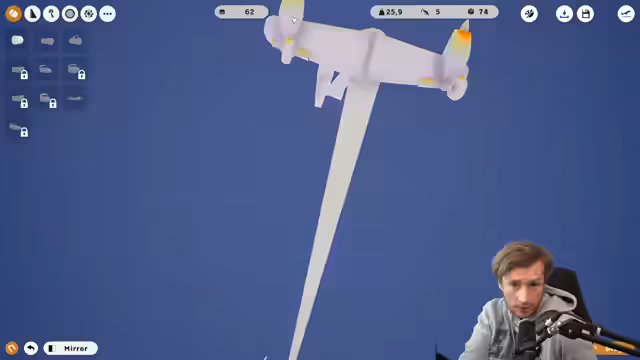 02:52:50Zu Beginn des Stream-Teils kämpft der Streamer mit der Konstruktion eines Flugzeugs, das aussieht wie eine Giraffe. Er beschäftigt sich damit, den Schwerpunkt zu optimieren, indem er Teile umplatziert und versucht, den Drag (Luftwiderstand) zu reduzieren. Das Projekt gestaltet sich schwieriger als erwartet, da die Giraffe nicht stabil stehen oder nicht wie gewünscht fliegt, was zu Fehlstarts und Instabilität führt. Der Streamer experimentiert ständig mit der Anordnung der Teile, um ein funktionierendes Luftfahrzeug zu bauen, das auch schwierige Manöver wie Landungen bewältigen kann.
