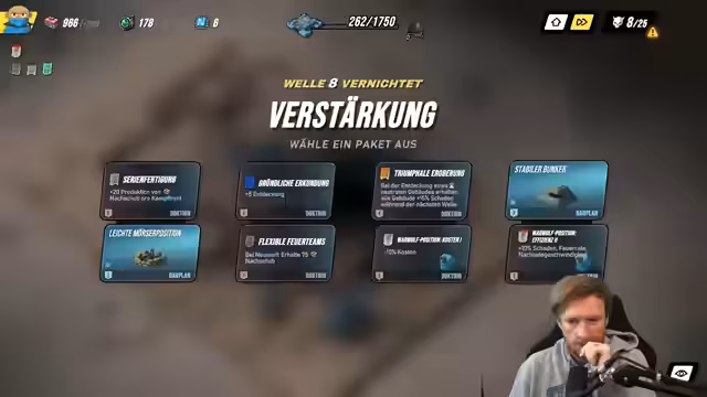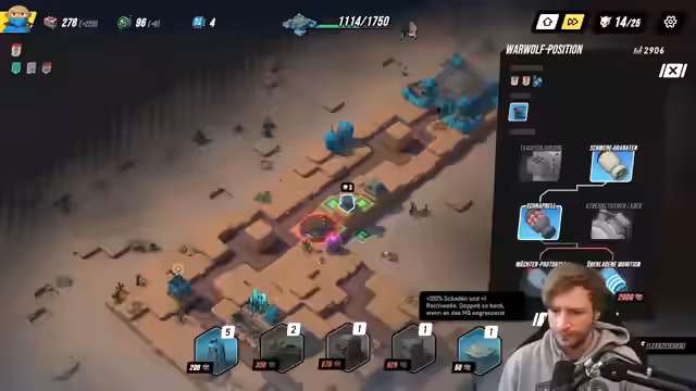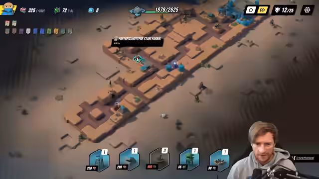 01:24:56In diesem Abschnitt beschäftigt sich der Streamer intensiv mit der Tower-Defense-Phase des Spiels. Sein Hauptaugenmerk liegt darauf, Gebäude effektiv zu platzieren, um Schäden zu maximieren, insbesondere durch Lufteinheiten. Er kritisiert sein eigenes Vorgehen als "greedy" und betont, dass er sich in einem kritischen Spielzustand befindet, der eine genaue Planung erfordert. Rerollen wird als wichtigste Strategie zur Verbesserung der Ausgangssituation hervorgehoben. Der Streamer ist sich der Gefahr, unglücklich zu sterben, bewusst und versucht, durch gezielte Upgrades und Gebäudeplatzierungen wie Flak-Geschütze und Bunker das Überleben zu sichern.