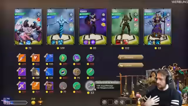 01:51:41Der Streamer nimmt eine detaillierte Analyse der verfügbaren Items vor und bewertet ihre potenziellen Auswirkungen auf die Kampffähigkeiten des Teams. Er erörtert, wie bestimmte Effekte wie Schock und Betäubung genutzt werden können, um die Gegner zu kontrollieren und den eigenen Vorteil zu maximieren. Der Streamer konzentriert sich darauf, die Synergien zwischen verschiedenen Items und Heldenfähigkeiten zu optimieren, um eine maximale Effizienz im Kampf zu erreichen. Er experimentiert mit verschiedenen Kombinationen, um die ideale Balance zwischen Schaden, Verteidigung und Heilung zu finden. Der Streamer erklärt, dass er jetzt verteidigungsmäßig durchgespielt hat und die Alte 10.000 Leben hat und alle 6 Sekunden 5% ihres maximalen Lebens heilt. Er erklärt, dass er irgendwie seinen AD steigern muss, aber das eigentlich auch schon keiner selbst macht. Der Streamer erklärt, dass er auf jeden Fall das holen muss, das, das und das. Er holt erstmal nur Stats.