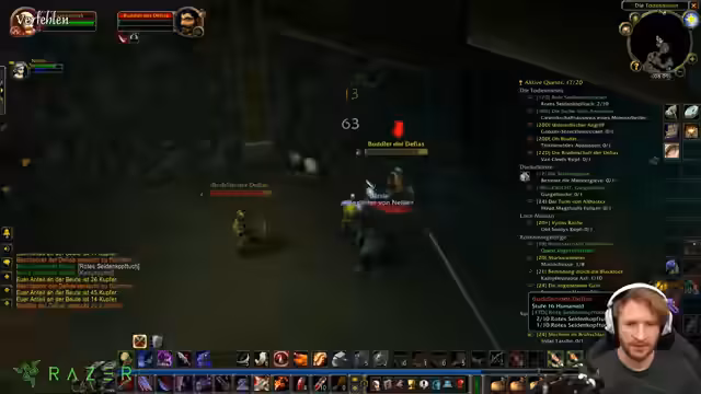01:22:49Probleme beim Deadmines-Run werden deutlich: Ausfälle von Spielern (z.B. Nelly) und Kommunikationsfehler wie vergessene Ruhesteine führen zu Frustration. Der Streamer beschreibt unangenehme Quests und niedrige Level, die den Fortschritt blockieren. Besonders kritisiert er das Verhalten anderer Spieler, die bei Elite-Mobs nicht helfen (Griefing), und reflektiert über die Moral solcher Situationen. Ein spezifisches Beispiel ist ein Level 21-Zwerg, der trotz gleichen Levels nicht eingreift und damit XP verpasst.
