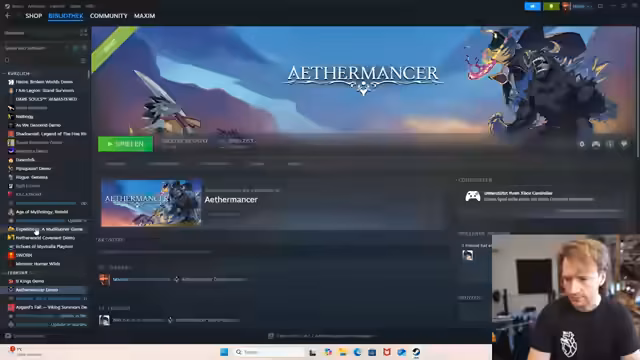 00:00:33Der Streamer beginnt den Stream mit der Suche nach einem neuen Spiel. Überprüft zunächst die Wünsche der Community für Steam-Spiele wie Keep Driving und That's Not My Neighbor, bevor er sich auf controllerfreundliche Titel konzentriert. Er durchgeht diverse Demos wie Turm von Babel und Achilles, bewertet sie aber meist als zu kurz. Besonders hervorgehoben werden Souls-likes wie Wu Chang und Mandragora, deren Erscheinungstermine jedoch im April liegen, was zu Frustration führt.