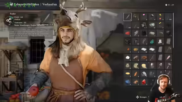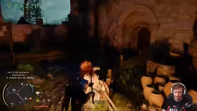 00:07:58Ein Hauptthema des Streams ist die Infiltration einer befugten Region, wobei zwei Strategien möglich sind: unbemerkt vorbeischleichen oder die Verwendung von Verkleidungen. Der Streamer wählt den Weg des Diebstahls, was jedoch negative Konsequenzen wie einen Rufverlust nach sich zieht. Er stellt fest, dass Bewohner im Spiel sofort bemerken, wenn Gegenstände gestohlen werden, was eine reale Einschränkung darstellt. Trotzdem versucht er, Artefakte und Rezepte zu klauen, auch wenn dies oft als Verbrechen gewertet und bestraft wird.