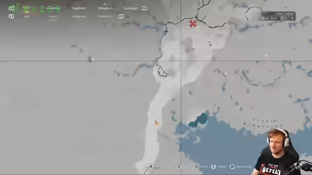 02:10:10Nach dem Kampf konzentriert sich der Streamer auf die Erkundung der Spielwelt und das Lösen von Quests. Er stellt eine Liste der Grämanen fertig und teleportiert sich zu verschiedenen Orten, um Fragezeichen auf der Karte zu untersuchen. Dabei fängt er einen Waschbären und versucht, ihn über den Viehschwarzmarkt abzugeben. Auch die Suche nach einem Schatz mittels Schatzkarte steht im Mittelpunkt, wobei er versucht, das Muster der Kreuze auf der Karte mit der Umgebung in der Welt abzugleichen.