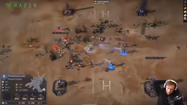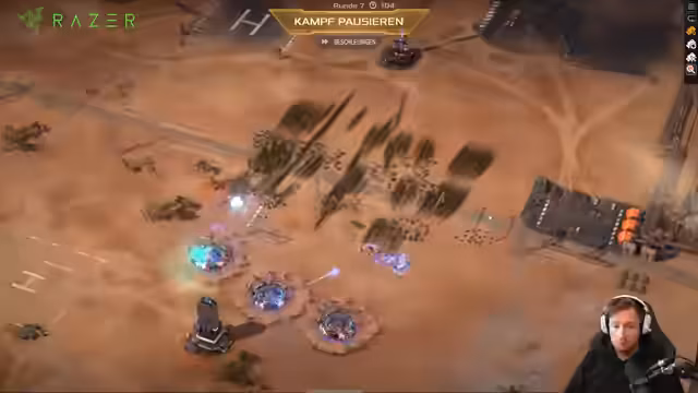 00:10:16Einem schwierigen Gefecht mit einem gegnerischen Sandwurm steht eine erfolgreiche Verteidigung gegenüber. Der Streamer erkennt, dass gegnerische Ionenstrahl-Einheiten zwar sehr teuer, aber auch sehr gefährlich sind. Durch den Einsatz von EMP-ähnlichen Fähigkeiten und gezielten Upgrades wie mehr Reichweite für seine Sniper kann er die Angriffe des Gegners abwehren. Eine strategische Umpositionierung und der Einsatz von Flammenwerfern erweisen sich als Schlüssel zu einem erfolgreichen Comeback, das den Gegner überrascht.