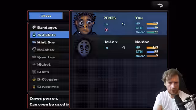 02:36:06Es wird deutlich, dass Hygiene ein wichtiger Faktor im Spiel ist, da der Charakter bei mangelnder Hygiene schlechte Effekte wie reduziertes Glück und erhöhte Anfälligkeit für Feinde erhält. Der Streamer entscheidet sich, sich zu duschen, um diesen negativen Status zu entfernen. Gleichzeitig stehen Kampfentscheidungen an, wie der Umgang mit NPCs wie Ernest oder der Delivery Guy, wobei der Streamer strategisch vorgeht und immer wieder kritische Situationen meistert oder scheitert.