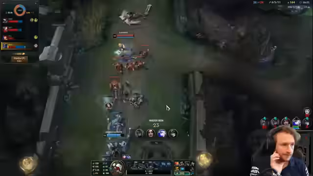05:21:20Im frühen Spielverlauf wird die Strategie besprochen, wie man mit einem aggressiven Olaf auf der Top-Lane umgeht. Es wird vermutet, dass Olaf versuchen wird, den Streamer zu "runterrennen", aber das Team plant, dies durch frühes Warding und sicheres Spielen zu verhindern. Die Spieler koordinieren ihre Bewegungen und Fähigkeiten, um Kills zu sichern und die Gegner unter Druck zu setzen. Es kommt zu einem erfolgreichen Gank auf Evelyn, und das Team versucht, den Vorteil zu nutzen. Die Kommunikation über Ult-Timings und Item-Builds ist entscheidend, um die Kämpfe zu gewinnen und die Kontrolle über das Spiel zu behalten. Es wird auch über die Möglichkeit gesprochen, die Lanes zu tauschen, um auf die gegnerische Strategie zu reagieren.