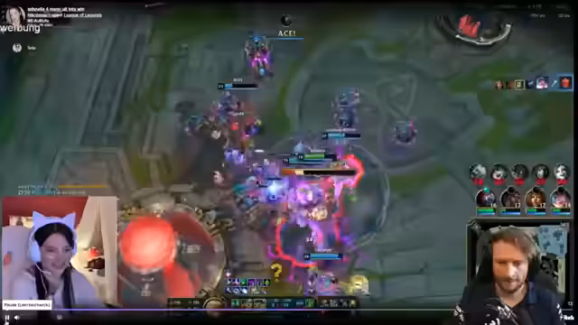 05:51:39Im späten Spiel konzentriert sich das Team darauf, gute Engages zu finden und die Olaf-Ulti abzuwarten, um Teamkämpfe zu gewinnen. Es wird versucht, die Lanes zu pushen und Objectives wie Drake zu sichern. Die Spieler koordinieren ihre Ult-Timings und Item-Builds, um den größtmöglichen Schaden zu verursachen. Trotz einiger Rückschläge und der Stärke des gegnerischen Olafs versucht das Team, die Kontrolle über das Spiel zu behalten und die Nexus-Türme zu verteidigen. Die Kommunikation bleibt entscheidend, um die Bewegungen der Gegner zu verfolgen und auf ihre Angriffe zu reagieren. Am Ende des Spiels bedankt sich der Streamer bei seinen Zuschauern und verabschiedet sich, während er auf zukünftige Streams und Sponsoren hinweist.