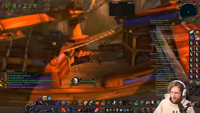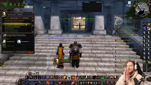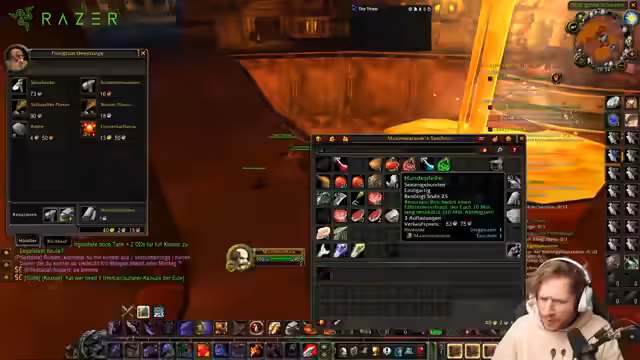 00:33:49Der Streamer beginnt, sich auf anstehende Raids vorzubereiten. Es wird über die Verteilung von Items gesprochen, insbesondere eine sehr mächtige Waffe, die einem Gildenmitglied namens Toro gegeben werden soll. Gleichzeitig werden strategische Fragen zum Raiding diskutiert, wie man den Zugruuf-Buff optimal einsetzt und warum dieser im späteren Spielverlauf wichtiger sein könnte als der Onyxia-Buff. Das Sammeln und Verteilen von Raid-Buffs wird priorisiert.