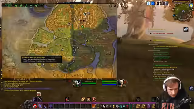 03:38:55Das Gameplay von World of Warcraft steht im Mittelpunkt, wobei der Streamer die aktuelle Spielumgebung als überfarmt und voll von Spielern beschreibt, die um jeden Mob kämpfen. Er betont das positive Gefühl, ein 'Early-Gebiet' zu besitzen und dort alles zu machen. Es findet ein Erfahrungsaustausch mit einem internationalen Mitspieler statt, der zu humorvollen und teils ungewöhnlichen Chat-Konversationen führt. Der Streamer reflektiert das Gameplay und vergleicht es mit früheren Erlebnissen in anderen Spielen wie 'League of Legends'.