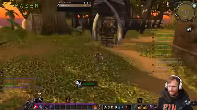 01:56:41Der Stream beginnt mit der Ankunft in der Ortschaft Razerfang im Brachland. Der Sprecher erkundet die Umgebung, beschreibt den kompakten und übersichtlichen Aufbau im Vergleich zu Stormwind und zeigt besonderes Interesse an dem ikonischen Design, das aus Warcraft 3 bekannt ist. Die Erkundung führt ihn zu wichtigen Stellen wie dem Waffenlehrer, der Bank und dem Flughafen, wobei er die strategisch vorteilhafte Logik der Stadt, die Nähe zwischen Bank und Flughafen, lobt und den für Untote untypischen Aufbau mit geraden Körperhaltungen der Orks humorvoll kommentiert.