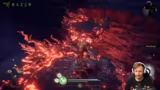 00:22:20Ein schwerer Bosskampf beginnt, der mehrere One-Shots vom Streamer fordert. Er sammelt eine Million Seelen und erlebt den Verlust seines Rückgrats, was ihm das Aufstehen unmöglich macht. Der Streamer analysiert den Boss und seine Moveset, und bemerkt die fiesen Kombos und AoE-Angriffe. Er erwähnt, dass der Schaden durch das Tragen des Helms erhöht wird, und stirbt durch eine fiese Kombo, bevor er sich am Bonfire wiederfindet und refreshed wird.