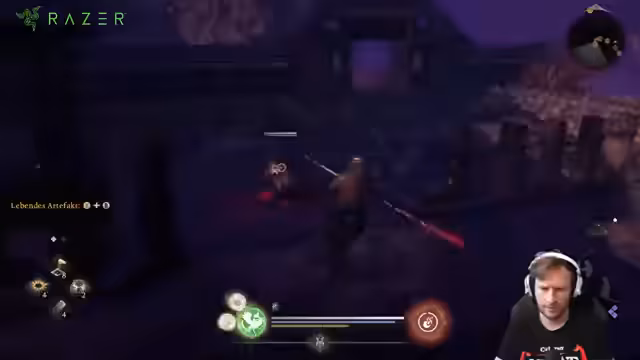 00:42:07Der Streamer arbeitet an seiner Taktik und erwähnt einen upcoming Termin, der das Streamen am nächsten Tag unmöglich macht. Er kämpft gegen einen Zyklop, der sich in einen Großen verwandelt, wenn er genug Energie gesammelt hat. Er stellt fest, dass es ein wilder Gegner ist und dass der Parry-Sound sehr befriedigend ist. Er bespricht die verschiedenen Kampfgeister, wie die Life Rake, die ihm viel Leben gibt, und findet, dass der Durchbohrungsschaden und der Bogenschaden-Bonus sehr stark sind.