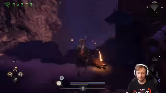 00:17:43Der Streamer spricht über die vielen Locken des Ninjas, die er findet, und erwähnt, dass es auch schlechte Bonfire-Slots gibt. Er diskutiert seine Schwächen in Shootern, besonders mit einem Controller, und zieht den Vergleich zu Returnal auf PC. Er kämpft gegen einen neuen, großen Gegner, den Cursed-Vogel, und kommt nur knapp mit dem Leben davon, während er die Map erkundet und nach Waffen und Items sucht.