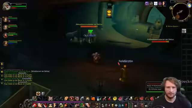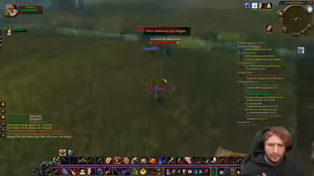 02:21:37Der Streamer übernimmt die Rolle des Tanks, obwohl er kein Schild hat und mit seinem "Face" tankt. Er kann Aggro ziehen, aber nicht viel, da er keinen Spott besitzt, sondern Fähigkeiten wie Rüstungszerfetzer und demoralisierende Rufe einsetzt. Er fragt nach der Bedeutung von "DM" (Deadmines) und ob das Dungeon mit vier Spielern machbar ist. Während des Dungeons diskutiert er über seine Fähigkeiten und die Teamdynamik, wobei er sich fragt, ob er als Tank auch Schaden machen oder nur Aggro halten soll. Er ist beeindruckt von der Effizienz der Gruppe und dem schnellen Vorankommen. Er bemerkt die "Energy"-Leiste und fragt sich, ob er Wut für wichtige Momente aufsparen soll. Die Gruppe kämpft sich durch die Todesminen, und er kommentiert die Bosskämpfe, wie den gegen Mr. Smite, bei dem er seine Fähigkeiten wie Rüstung zerreißen und Bodenschlag einsetzt. Er wundert sich über die Loot-Verteilung und die Reaktionen des Chats, als er eine Rüstung an einen anderen Spieler weitergibt, da er sie selbst nicht benötigt. Er betont, dass er als Streamer kein Loot-Goblin ist und nichts für sich selbst behalten möchte, da er durch seinen Beruf bereits privilegiert ist und das Spiel als Lernerfahrung dient.