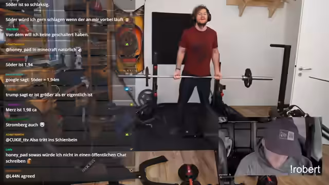 00:37:49Der Streamer berichtet von einem Hotpot-Essen mit seinen Nachbarn, bei dem sie trotz der Magenbelastung eine gute Zeit hatten. Besonders begeistert war er von frittiertem Schweinebauch, den er als „völlig illegal“ lecker beschreibt. Er fragt sich, ob er bei einer Quest in einer Höhle etwas falsch macht oder ob er eine Etage tiefer suchen muss, um die benötigten sechs Spezialerze abzubauen. Er findet die Höhlenquest „schön klassisch“ und überlegt, wie Blizzard die Respawn-Rate von Gestein in überfüllten Servern anpassen könnte, um Hyperspawns zu vermeiden. Er plant, sich für eine Stunde auszuloggen, um sein Training um 8 Uhr mit seinem Personal Trainer Robert zu absolvieren. Das Training beinhaltet Barbell Curls und Bumble Extensions. Er scherzt über die Effektivität seiner Nase nach dem Kickboxen, die sich wie ein „Lehmklumpen“ anfühlt, der immer wieder neu geformt wurde, und erwähnt eine Nasenkorrektur, die sie „aus Gummi“ gemacht hat.