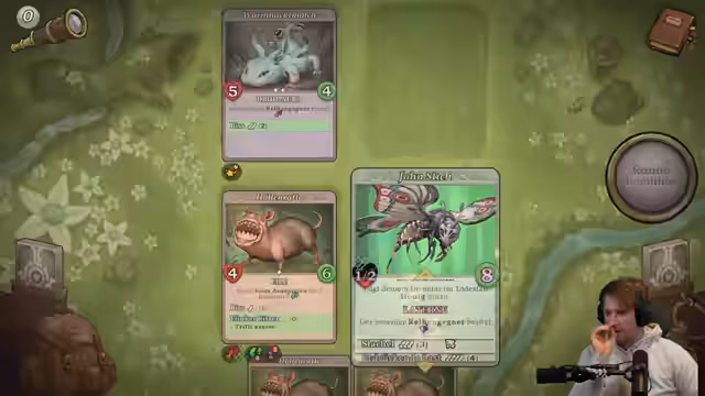 02:32:38Der Streamer überlegt, wie viele Felder der Held gemacht hat und ob eine Dekoration, die Münzen macht, sinnvoll wäre. Die Verbesserung aller Mauern wird in Betracht gezogen, um die Verteidigung zu stärken. Ein Riese greift an und reißt die Mauer ein, was zu einer Niederlage führt. Das Königreich erreicht Stufe 7. Anschließend wird das Spiel Deck-Tamer vorgestellt, ein Roguelike-Spiel, das an Pokémon erinnert. Das Tutorial von Deck-Tamer wird durchgespielt, wobei die Mechaniken des Kampfes, der Zähmung und der Fähigkeiten der Kreaturen erklärt werden. Der Streamer lernt, wie man Kreaturen einsetzt, Angriffe ausführt und Objekte verwendet, um Schwäche zu bewirken oder Robustheit zu verleihen. Die Bedeutung von Tempo und Prioritätsaktionen wird hervorgehoben. Das Spiel bietet verschiedene Gegner und Belohnungen, und die Möglichkeit, Talente und Aktionen zwischen Kreaturen zu übertragen, wird als interessant empfunden.