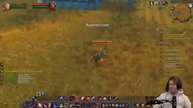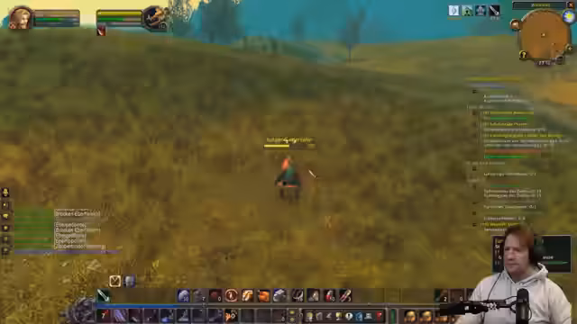 00:00:56Der Stream beginnt mit einer lockeren Begrüßung der Zuschauer, wobei der Streamer humorvoll über verschütteten Kaffee auf seinem Pullover spricht. Er befindet sich im Büro und erwähnt, dass er noch arbeiten muss, was die Zuschauer im Verlauf des Streams auch sehen werden. Spielerisch kämpft er in einem Game, in dem sein Schaden als unterirdisch beschrieben wird, und er fragt sich, warum er so schlecht ist. Er bemerkt, dass er nicht zu nah an einem gefährlichen Gegner sein darf und dass sein Pullover nach mehreren Kleckereien nun als Rüstung dient. Die Rede ist von 'Corrupted Blood' und der Vorteil des Büros, wo 'everything lies around'. Er plant, 'Nachtreten' wieder zu erforschen und beklagt das Fehlen von Buff Food, obwohl er noch 'Blutwurst' hat. Er hat bisher nur die härteste Variante des Kriegers ausprobiert und findet die aktuelle Gegend im Spiel sehr schön, während er sich über die Aggressivität anderer Spieler Gedanken macht.