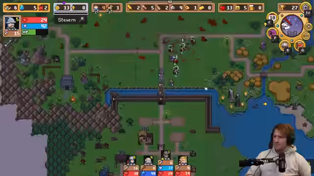 02:25:43Der Streamer plant den Bau eines weiteren Turms und schickt Arbeiter auf eine Weizenmission, um einen neuen Typen freizuschalten. Das Burgtor soll in die Mitte gesetzt und mit Bogenschützen besetzt werden. Ein falsches Gebäude wurde ausgewählt, was zu einem Überfluss an Weizen führt. Die Funktion von Religion ist unklar, aber es wird überlegt, ein Monster herauszufordern, wofür Weizen benötigt wird. Das Portal wird als interessante Option identifiziert, um mehr Einheiten zu halten. Die Levelung des Mönchs erfordert mehr Bretter und Nahrung, was ein akutes Problem darstellt. Es gibt keinen Platz mehr für weitere Nahrungsproduktion, und die Option, Gestrüpp zu sammeln, wird in Betracht gezogen. Der Wildspot wird als potenziell bessere Nahrungsquelle identifiziert, und die Auswirkungen von Hunger auf die Einheiten werden diskutiert.