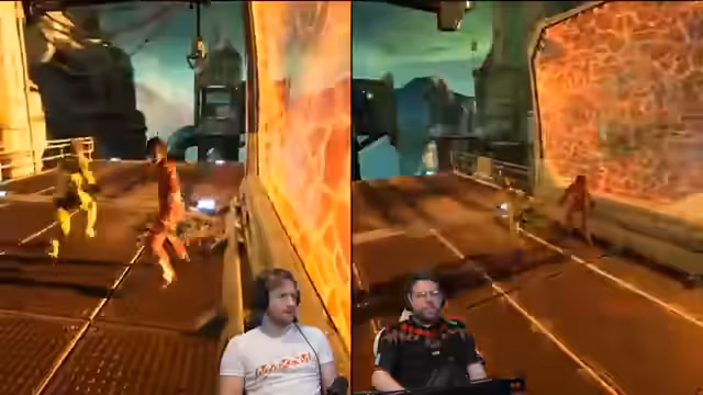 04:42:16Der Stream konzentriert sich auf das Lösen von komplexen Rätseln in einem Action-Adventure-Spiel. Es werden verschiedene Mechaniken wie Routenwahl, Farbsequenzen und die Synchronisation der beiden Spielercharaktere gezeigt. Die Kommunikation zwischen den Spielern ist hektisch, mit unzähligen Versuchen und Fehlern, oft unter Zeitdruck und mit viel Schreien und Ausrufen. Das Gameplay wechselt zwischen schnellen, rhythmusbasierten Herausforderungen und taktischen, koordinierten Manövern, die beide Spieler exakt zeitlich abstimmen müssen.