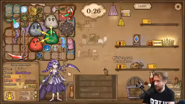03:12:41Der Streamer startet eine Runde gegen 30 Personen aus dem Chat, die der Arbeit entfliehen wollen. Er spielt mit seiner stärksten Figur, der Hermana Orb, und eliminiert als Erstes 'Emil'. Es werden die Spielmechaniken erklärt, wie zum Beispiel das manuelle Ausführen der Runden. Er hat Spaß am Mucke und an der Interaktion mit der Community, welche er zu mehr 'Arbeitsverweigerung' animiert.