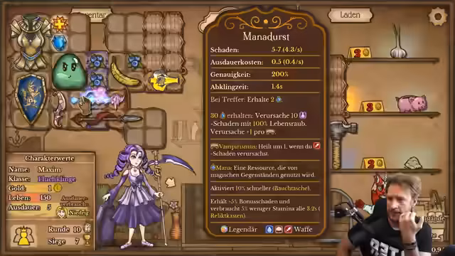 00:02:36Im Fokus steht der Aufbau eines Builds um den 'Gubert'. Der Streamer erwägt, die Stahl-Gubert-Version zu priorisieren, um früh im Spiel Vorteile zu erzielen. Die Entscheidungen werden von Platzbeschränkungen und den Kosten der Items geprägt. Es werden verschiedene Gegenstände wie Ausdauertränke, ein 'Steinwurf-Item' und der 'Mahler-Schild' diskutiert, wobei die Balance zwischen Schadenssteigerung, Heilung und Platzverbrauch ständig neu bewertet wird.