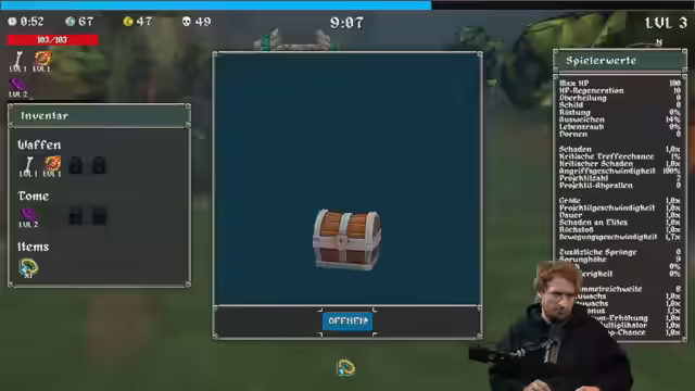 00:49:54Nachdem die Soundprobleme provisorisch gelöst wurden, beginnt das Gameplay von "Megabonk". Das Spiel wird als eine Mischung aus Vampire Survivors und Risk of Rain beschrieben, wobei der Streamer die ungewöhnliche Kombination und das fesselnde Gameplay lobt. Er testet verschiedene Waffen und Power-Ups, darunter eine "Big-Ass-Biene" und Fitnespritzen. Der Streamer erkundet die Spielwelt, sucht nach grünen Statuen und stellt sich Bossen. Trotz des fehlenden Tons äußert er sich positiv über das Spieldesign und die kreativen Elemente. Er experimentiert mit verschiedenen Strategien, wie dem Sammeln von "Pfeilern" für Upgrades und dem Ausprobieren verschiedener Builds, wobei er sich auf Projektilgeschwindigkeit und Schaden konzentriert. Der Streamer kommentiert humorvoll die skurrilen Elemente des Spiels und interagiert mit den Zuschauern, die ihm Tipps geben.