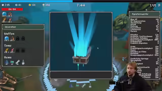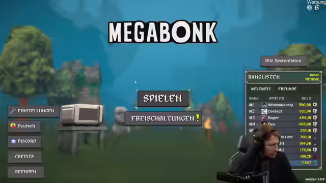 Trotz anfänglicher Soundprobleme wird 'Megabonk' gespielt. Der Spieler lobt das Gameplay, testet Waffen und Power-Ups, erkundet Welten und passt Strategien an. Ein neuer Charakter wird freigeschaltet. Es gibt Diskussionen über Magic the Gathering, Dino-Streams und Weltschmerz. Am Ende wird ein anderer Kanal unterstützt.