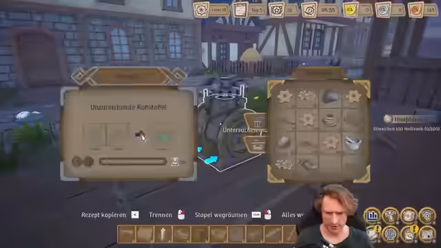 02:22:49Der Streamer beginnt ein neues Spiel namens 'Alchemy Factory', das auf Deutsch verfügbar ist. Er muss alchemistische Bewertungen abschließen, um sein Alchemie-Level zu steigern und Hauptquests zu erfüllen, wie das Einreichen von 20 großen Holzrädern. Er kauft ein Land und beginnt mit dem Bau eines Tisches und der Forschung für eine Kreissäge. Die ersten Schritte sind sehr geradlinig, aber er muss sich an die Steuerung und die Mechaniken gewöhnen, insbesondere an das Zerstören von Objekten mit 'X' und das effiziente Produzieren von Gütern. Er stellt fest, dass das Spiel ihn vor Herausforderungen stellt, da er noch keinen Filter für sein heißes Wasser hat und seine Produktionskette optimieren muss.