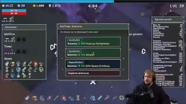 02:07:08Es wird eine persönliche Anekdote über eine schlechte Erfahrung mit alkoholfreiem Hefeweizen im Bett geteilt, die zu Sodbrennen und Magenproblemen führte. Der Vorfall wird humorvoll als Kampf des Körpers gegen das Problem beschrieben. Es wird betont, dass man aus Fehlern lernt und bestimmte Dinge in Zukunft vermeidet. Im weiteren Verlauf wird der Fokus wieder auf das Spiel gelenkt, wobei der Flächenschaden und die Rolle des Bürgers diskutiert werden. Es wird die Bedeutung von Zeit im Spiel hervorgehoben und wie Schlafverlust den Tagesablauf beeinflussen kann. Es wird die Freude am morgendlichen Zocken betont und die Frustration, wenn dies nicht möglich ist. Es wird über die Notwendigkeit von Projektilzahl und Schaden diskutiert, um erfolgreich zu sein. Es wird die Bedeutung von Heilung im Spiel angesprochen und die Notwendigkeit, den richtigen Flächenschaden zu verursachen. Es wird die Schwierigkeit betont, die richtige Balance zwischen verschiedenen Attributen zu finden, um im Spiel voranzukommen.