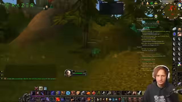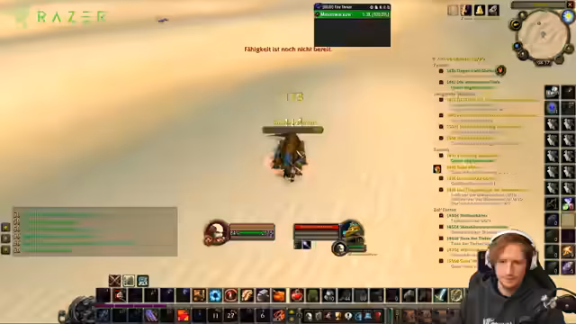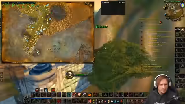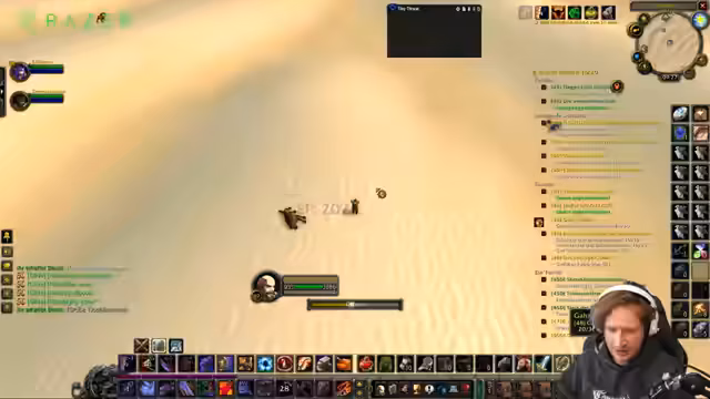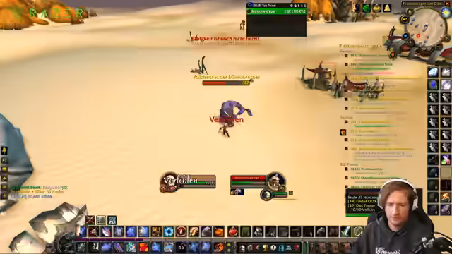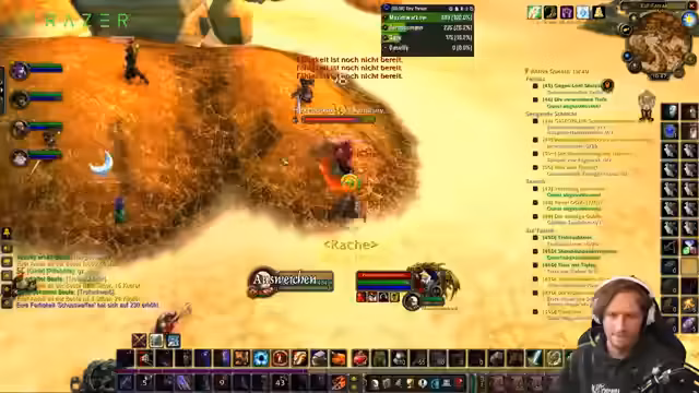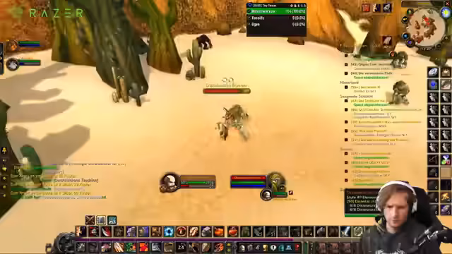 00:00:07Der Stream beginnt mit Routinen wie Kaffee holen und der Feststellung, dass er seit mehreren Stunden wach ist. Die primäre Aktivität ist das Farmen von Wolfsfleisch, um den Kulinarik-Skill auf 300 zu bringen. Dies geschieht auf unkonventionelle Weise, indem die Mobs auf möglichst gestörte Art und Weise getötet werden. Parallel dazu wird gelevelt und es wird das Ziel verfolgt, in Gebiete wie Tanaris und Felwood zu reisen, um dort Kill-Quests zu erledigen und neue Essensrezepte zu finden, insbesondere eines, das Regeneration bietet.