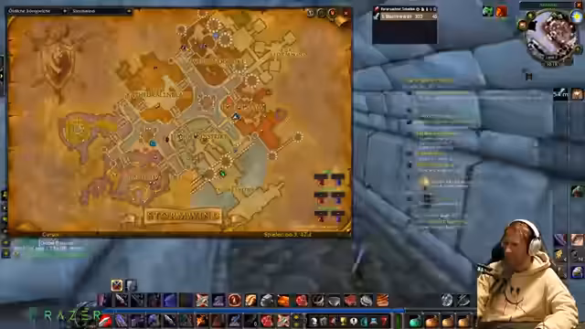 00:00:00Der Stream beginnt mit einem lauten Party-Gruß, schnell wird jedoch klar, dass technische Probleme im Vordergrund stehen. Der Streamer verwendet einen fremden PC, der mit über 340 Addons überladen ist, was zu massiven UI-Problemen führt. Er kämpft mit ungewohnten Tastaturbelegungen, fehlender Musik und einer unübersichtlichen Oberfläche. Besonders die HP-Anzeige stört ihn, da sie wie eine Excel-Tabelle aussieht, und er versucht verzweifelt, störende Addons wie Unit Scanner und Twitchy-Modes zu deaktivieren. Das chaotische Setup macht das Spiel zunächst fast unspielbar.