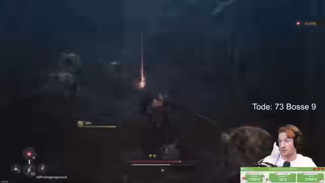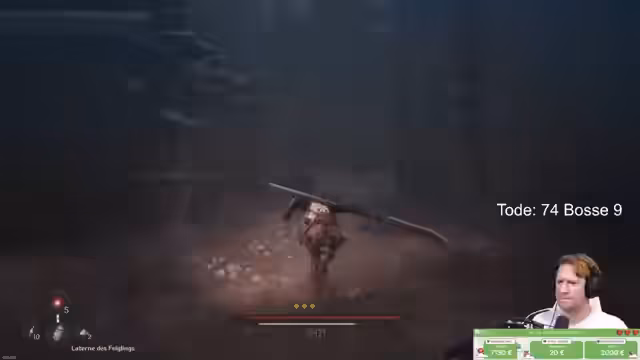 04:46:56Das Spiel wird durch spezifische Umgebungsmechaniken als besonders anspruchsvoll empfunden. Mechaniken wie Chaos, das kontinuierlich Maximal-HP abzieht, und Grabs, die den Spieler überraschend angreifen, werden als extrem unangenehm und unfair empfunden. Der Streamer merkt an, dass das Spiel nicht immer klar kommuniziert, wann ein Angreif parierbar ist und wann es sich um einen Grab handelt. Das führt zu häufigen Toden und der Notwendigkeit, Tränke zur Reinigung von Debuffs einzusetzen.