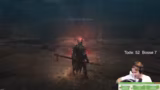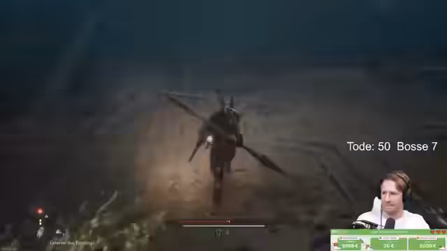 00:50:32Ein neuer Bosskampf beginnt, ein riesiger, gabelbewehrter Gegner. Der Streamer beschreibt die unkonventionellen Angriffsmuster des Bosses, dessen Angriffe oft nicht treffen und ihm die Kamera verzerren. Es wird festgestellt, dass man die Krallen des Bosses gezielt abblocken kann, um seine Haltung zu brechen und ihn wehrlos zu machen. Der Kampf wird als einfach, aber die Ausdauerkosten als sehr hoch beschrieben.