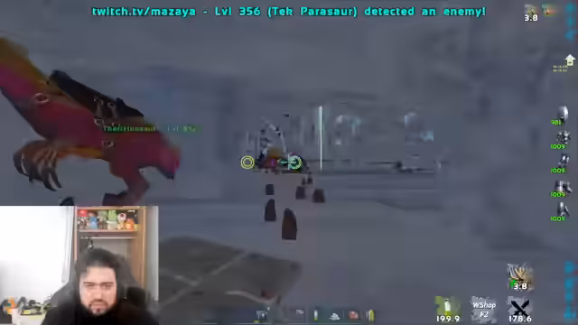 04:03:17Das Team überlegt, ob es Tyranosaurus Rexe (Tyros) schießen oder füttern soll. Der Streamer übernimmt die Aufgabe, mit seinem Stalker die Dinos zu picken. Der Tüler wird für seinen guten Job gelobt. Es wird entschieden, mit Prim-Feuer zu schießen, hinten zu puschen und auf mounted zu achten. Der Loot wird gesichert.